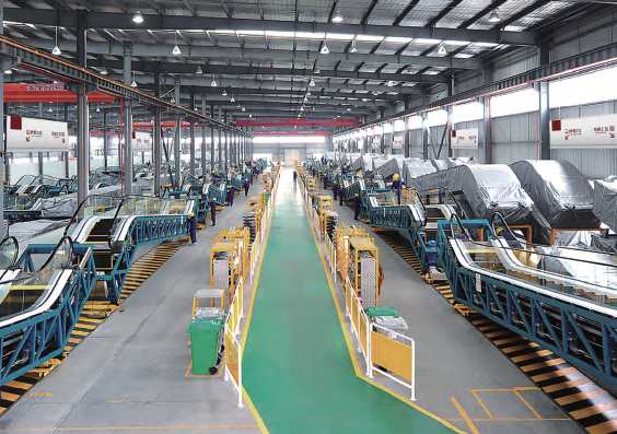 State-of-the-art manufacturing facility with organized production workflows, ensuring consistent quality and efficient assembly of elevator components.